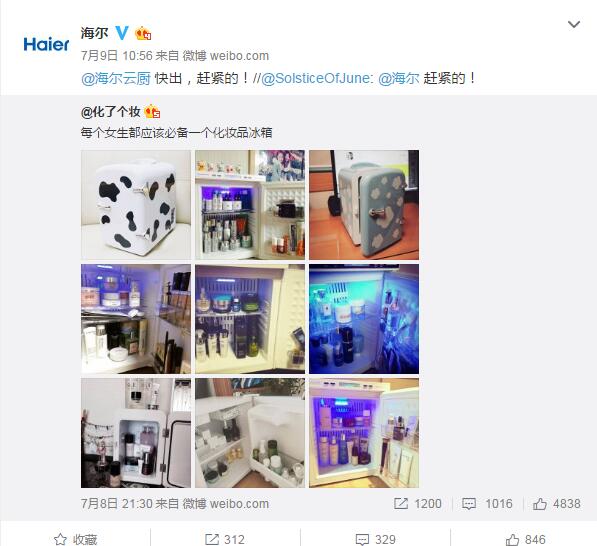 孫曉云女士梅花網傳播業大展上透露,運營著海爾官微的是一群平均年齡在1993年的90后,他們熱情又鬼點子多,領導給予了他們充分的信任,他們擁有著自主的決策權。當一個熱點出來了,他們反應熱點的能力非常迅速,想發的稿件從來不需要給領導審核,因此每一個新熱點出來,你都能第一時間看見海爾的身影。